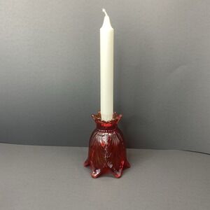 Vtg Fenton Red Amberina Glass Votive Double Candle Holder Tulip Fenton