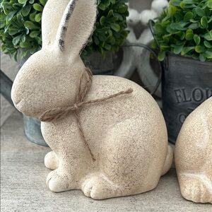 Charming cream bunny figurines with rustic twine accents. Perfect for your home decor Shabby Chic Farmhouse style