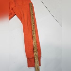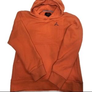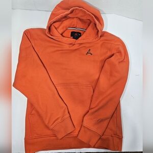 The JORDAN Men's Hoodie Jumper in size Small is a vibrant orange pullover made from a blend of cotton and polyester jersey fabric. Featuring a round neck, long sleeves, and a hood, this hoodie offers comfort and style for casual, formal, or business occasions. The pullover design makes it easy to wear, while the inclusion of a logo accent adds a designer touch. With its regular fit and hooded feature, this hoodie is perfect for activities like walking or basketball in the winter, fall, or spring seasons.