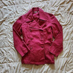 Vintage 00s coat, nice red color. 100% cotton, lighter weight jacket. The red color is a bit darker red than the way the pics look (pics look pinkish but it doesn't have a pink hue).