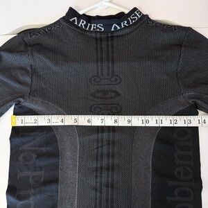 “The perfect base layer. This black long-sleeve top from Aries is crafted from a lightweight nylon-blend and promises a second-skin fit, complete with a plethora of branding, including the column graphic down the chest and the iconic “No Problemo” Slogan at either side. 86% Nylon, 14% Polyester Engineered Branding, Made in Italy. Aries Women's Long Sleeve Column Base Layer Top in Black”