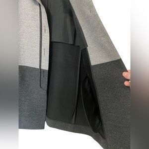 Carlisle Collection wool silk gray colorblock coat with oversized silver buttons