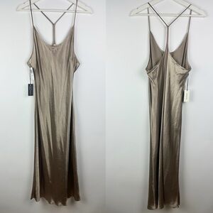 Aritzia BABATON Cox Grey Taupe Satin Midi Dress NEW