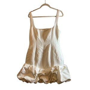 Fashion Nova Sienna Satin Mini Dress White Square Neck Bubble Hem Size L - NEW