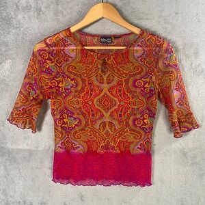 Vintage Y2k Top Womens Small Sheer Mesh Paisley Boho Indie Festival Hippie