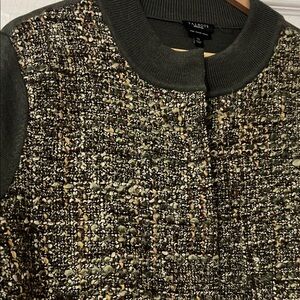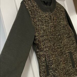 Stylish tweed jacket with dark green sleeves. Perfect for versatile wear.