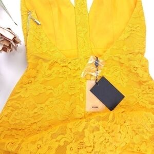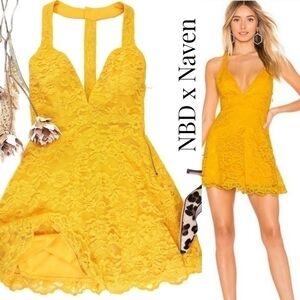 New Revolve NBD x Naven Yellow Embroidered Gorgeous Low Back Dress Sz Xs