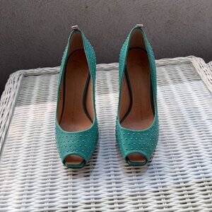 Giuseppe Zanotti Green Studded Peep Toe Heels Size 6