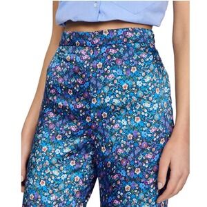 Sandro Donelo Satin Floral Print Floral Wide Flare Leg Pants,Blue/ Violet,M (42)