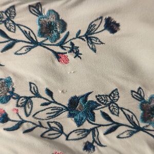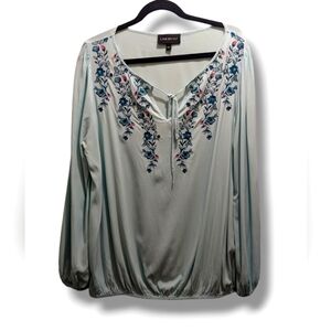 Lane Bryant Embroidered Blouse Top Women's Plus Size 14. Floral. Tassel Tie Neck. Casual. Ballon sleeves. Breathable and comfy. Elasticized Cuffs & Hem. Rayon Spandex Blend.