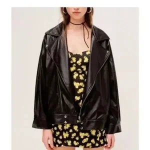 For Love & Lemons NWT Womens Black Dillon Faux Leather Moto Jacket Size M