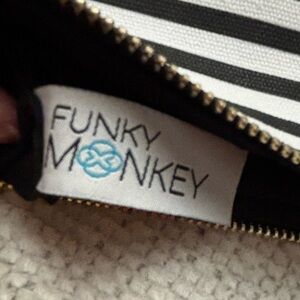 Funky Monkey Striped Black and White Clutch with Brown Faux-Leather, 11x7, VGUC