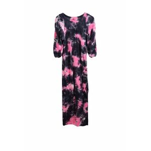 Natalia Martin Fiore Black Flat Cotton Maxi Dress Caftan XS