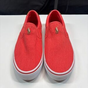 Polo Ralph Lauren Men's Shoes Thompson Wash Twill Slip On Sneakers 10D Red