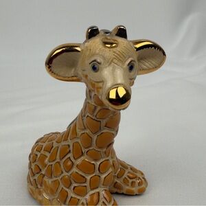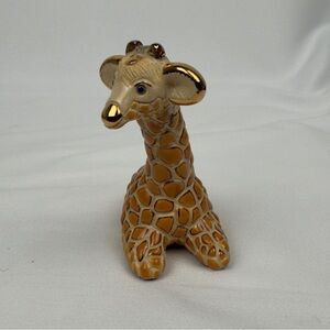 Charming ceramic giraffe figurine with gold accents. Features a detailed design with a glossy finish.