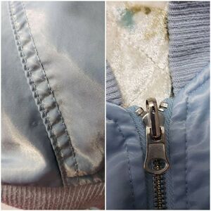 Condition: Good. Pilling on cuffs/hems, collar tag has come loose on bottom, three very subtle runs on satin side. Velvet side looks perfect. Lots of life left.