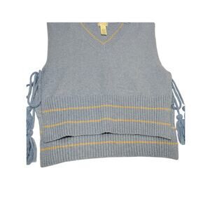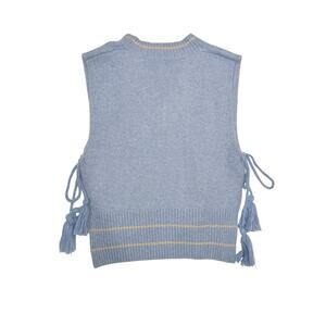 Free People All Star Striped Knit Poncho Vest Blue One Size Tassel Tie Sides