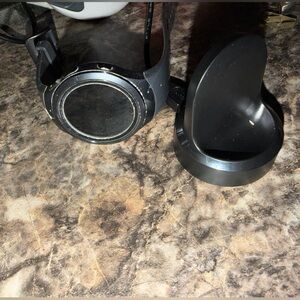 Samsung Gear S2 smartwatch with black Large band. Comes with a charger. Works well we just have Apple now.