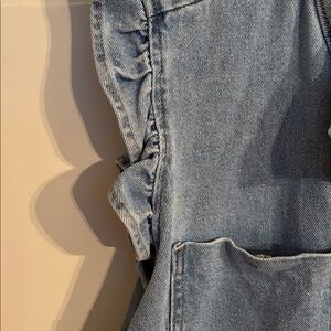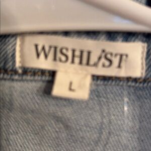 Denim crop vest by Wishlist. Light faded denim. Size large. Darling ruffled sleeves. 4 pockets. NWT. originally 81.00 marked down to 68.00. Darling addition to any seasons wardrobe. PTP 22, length 20.
