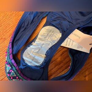 Stylish blue swim set with intricate purple and teal embroidery. Includes top and bottom. Perfect for a chic beach look. NWT! Gorgeous beading!