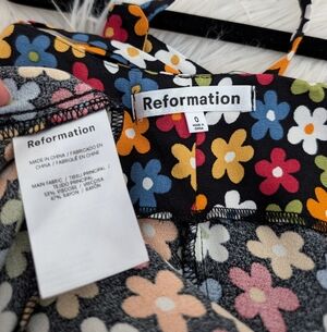 Reformation Black Floral Midi Dress 0