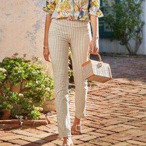 🥒 J. McLaughlin Masie Gingham Print Tapered Leg Slim Pull-On Trouser Pants 6
