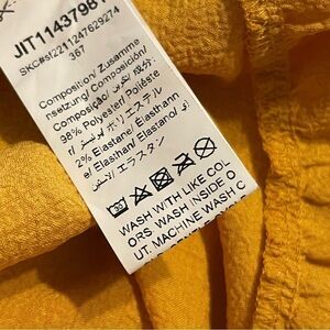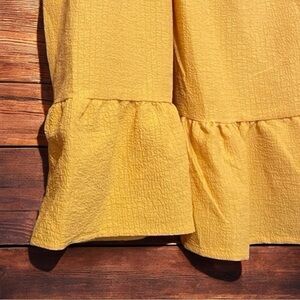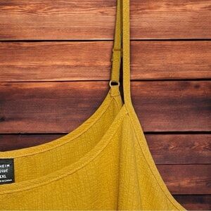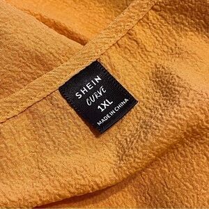 Shein Curve ruffle blouse. Adjustable spaghetti straps. Dark yellow color. Excellent condition. Measurements laying flat are approximately 21 inches wide from armpit to armpit, 22 inches long (longer or shorter with adjustable spaghetti straps). Size is 1X.