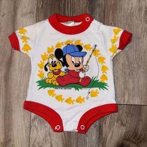 VTG Disney Babies 1984 Mickey Mouse Pluto Fishing One Piece Size 0-6 months