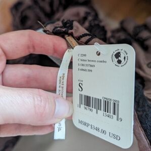 new with tags - some stitching coming undone at bottom of zipper as pictured Free People Ramona Ribbon brown & black embroidered puff sleeve mini dress Bitter brown combo - brown base with black embroidery detailing Floral embroidered detailing all over Ruched Short puff sleeves Zipper and hook & eye closure at back, black velour-like detailing on hardware Lined Made in India Body 100% viscose Lining 100% viscose aug23