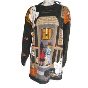 Northern Isles Vintage 90s Halloween Haunted House Ghost Hand Knit Sweater M