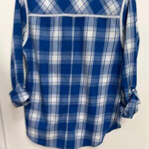 Abercrombie & Fitch Women's Blue & White Plaid Shirt with double pockets
