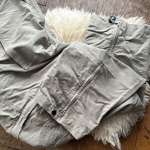 Stylish tan pants from The North Face. Ideal for casual outings. I love these pants, just too big. Zip off into shorts, and have snap and zipper openings at ankle as well to accommodate boots. Good condition and a nice high rise.