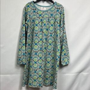 Hanna Andersson Blue and Green floral print long sleeve cotton dress size 8(130)