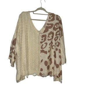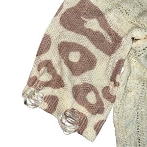 Cozy knit sweater with a stylish pattern. Soft and comfortable fabric. V neck on front and back distressed oversized never worn perfect condition no tags see pictures for measurements
