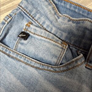 These KanCan jean shorts feature a stylish light blue wash with a cuffed hem, offering a relaxed and worn-in appearance. The shorts feature a button and zip closure along with the classic five pack of design and very minimal detailing making the shorts very versatile. Front rise 10 inches inseam 3 inches waist 29 inches made from 75% cotton, 20% poly, 3% viscose, and 2% spandex, giving the shorts Nice stretch