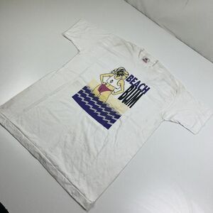 Vintage Beach Bum White T-shirt Wave Design Size Large Made In USA 100% Cotton.