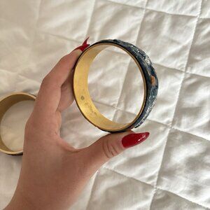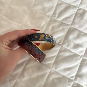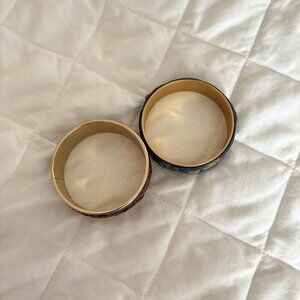 Lot Of 2 Handmade Bohemian Style Cuff Bangle Bracelet Art Blue Purple