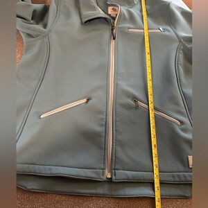 Carhartt women’s softshell jacket in a beautiful teal/blue-green color. Features a cozy fleece interior for warmth with a smooth, structured softshell exterior that’s great for outdoor work, hiking, or everyday wear.