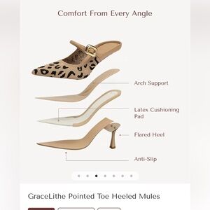 Elevate your style with these chic leopard print mule heels. Featuring a stylish buckle, these heels add a touch of wild elegance to any outfit. These are comfort shoes. They say size 5 but I wear a 6 and they fit perfectly. For reference I measured my foot and it’s 8 1/2 “