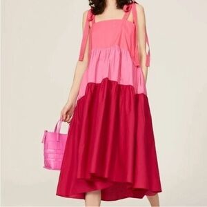 Peter Som Collective color block three tier ribbon strap pink Midi Dress
