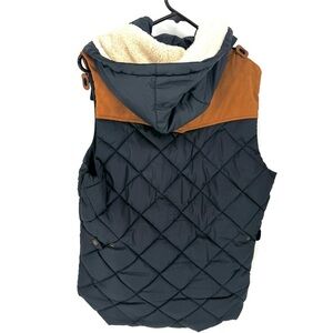 Chic quilted vest with a cozy hood. Ideal for layering. Adds warmth and style. Kids size 12, but fits a woman small.