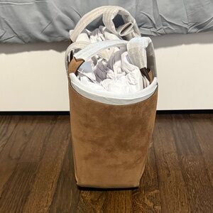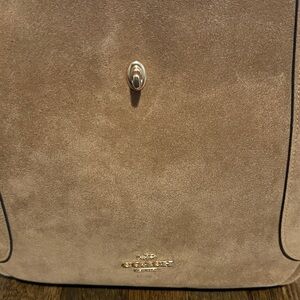 Chic tan suede tote by Coach. Spacious and stylish for daily use.