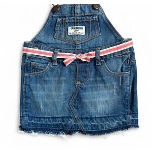 Osh Josh B’Gosh Baby Girl Denim Overall Denim Skirt Dress With Pink Tie 6 Months