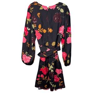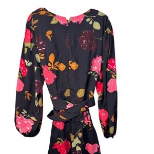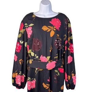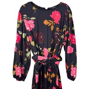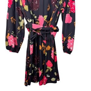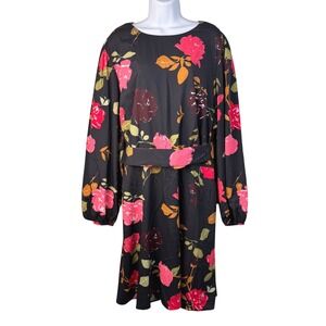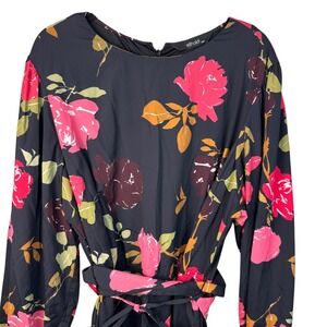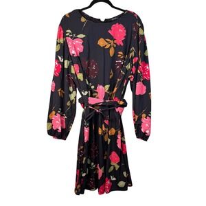 Eshakti Dress Women's 24W Floral Print Black Long Sleeve Knee Length Belted