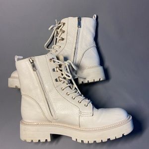 Sam Edelman Lue Ivory Chunky Block Heel Rounded Toe Lace Up Ankle Combat Leather Boots Size 10. Pre-owned excellent wear condition