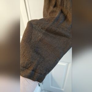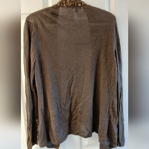 This elegant 2‑piece sweater set from Lafayette 148 New York features a beautifully embellished tank and matching open‑front cardigan. Both pieces are crafted from a soft, breathable 96% linen / 4% Lycra blend in a rich dark brown shade. The standout detail is the dramatic beaded and sequin trim—wood‑tone beads and copper‑tone sequins that add texture, shine, and a sophisticated statement.