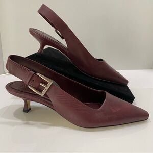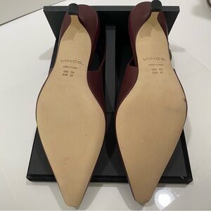 NEW VINCE Shasta Burgundy Slingback Kitten Heels Buckle Pointed Toe 7