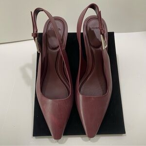 Elegant and modern, these VINCE Shasta slingback heels bring understated luxury in a rich burgundy tone. Featuring a pointed toe, sculptural kitten heel, and statement buckle strap, they’re perfect for workwear, dinners, weddings, or anytime you want a polished look without sacrificing comfort.