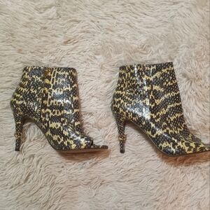 Coach Snakeskin Remi Open Toe Bootie, Genuine Supple Soft Snakeskin dyed to bring out its integral beauty, Side Zip, Unique Coach Heel Logo Jewelry, Office Siren, Classic, Preppy, Old Money, Timeless,