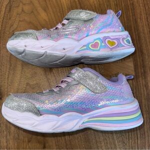 Skechers Kids' Glitter Sneakers - Silver and Lavender. Girls Size 1